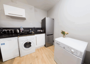 – A modern, fully fitted kitchen with breakfast area, dishwasher, washer-dryer, and fridge freezer